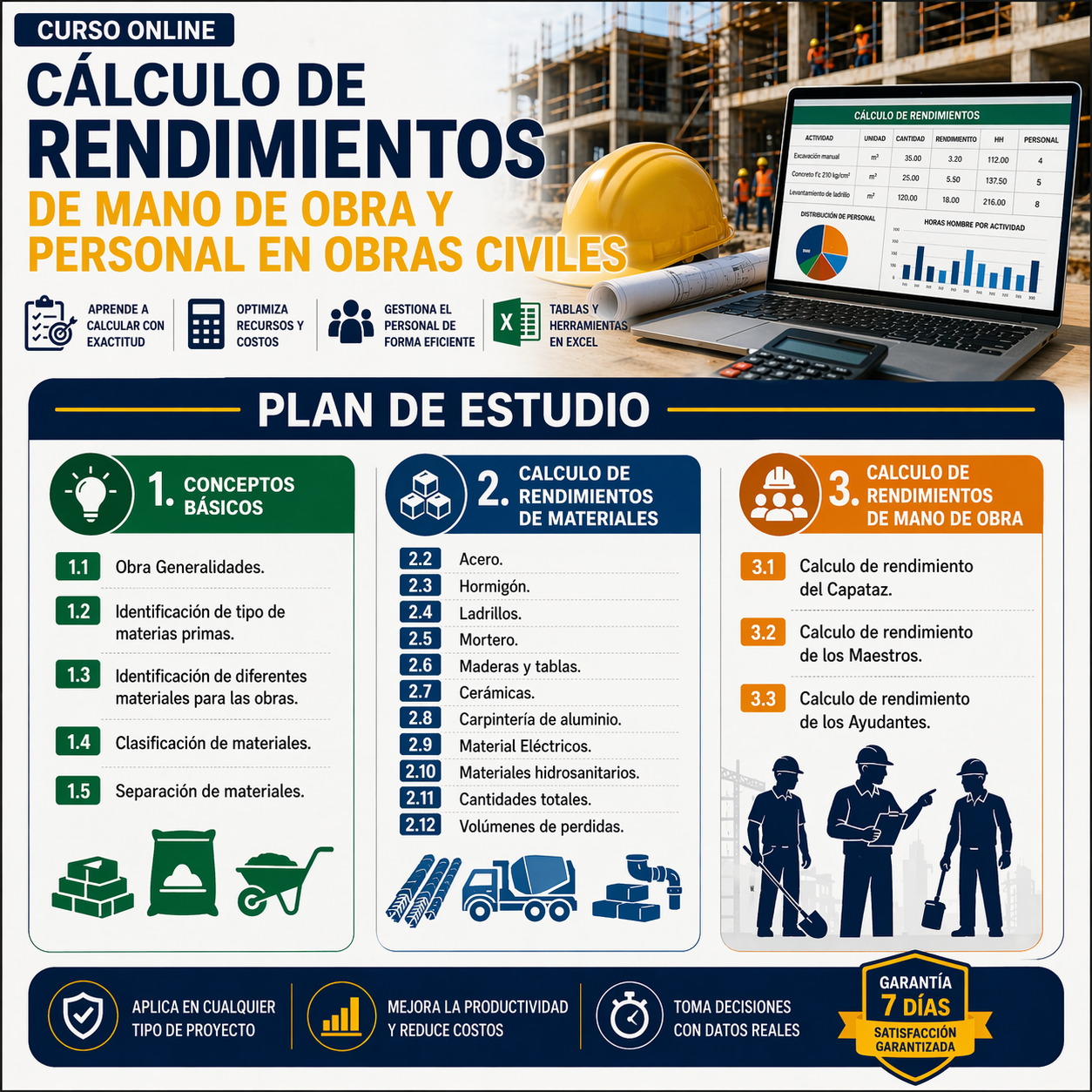 👉 La solución está en dominar el cálculo de rendimientos de mano de obra de forma técnica y profesional.